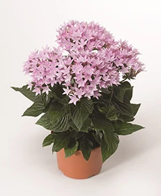 'Starcluster' penta, part of the Heat Lovers series, is a variety is bred to perform through hot summer conditions. Its flower clusters are supported by strong stems to ensure quality and consumer interest at retail. Additionally, its well- branched habit makes 'Starcluster' a good fit in landscapes and larger containers. Available in four colors: white, rose, red, and lavender, which is pictured here.