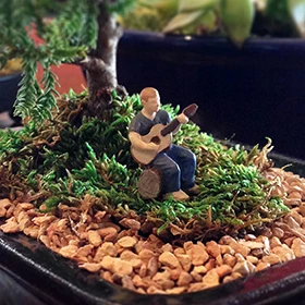 Terra Folk are "quirky little folks" for terrariums and miniature and tabletop gardens. Original handcrafted pewter cast figures are hand painted by artisans in the United States. Each is made with a unique stem (patent pending) for support in all types of terrain. With 16 "folks" available, the line features tiny people doing ordinary yet amusing activities. Pictured here is "Alex's Big Break," a 1-inch figure (not including the 3/4-inch stem.) All are customizable with light and dark skin color and varying hair colors.