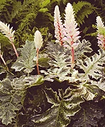 Terra Nova Nurseries offers Acanthus 'Whitewater', a vigorous, variegated Acanthus that has striking, bold leaves with deeply cut white margins that seem to splash down the leaves. It makes a large clump with 4-to-5-foot-tall ornamental flower stalks of pink and cream in summer.