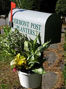 Vermont Post Planters can be attached to standard posts on decks, porches, balconies, fences, signs, mailboxes and anywhere else a post is located. They are available in dark green, white and terra cotta and in two sizes, 10 inches x 6 inches and 15 inches x 9 inches.