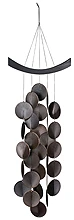 The Deco Wave chime from Woodstock Chimes is 33.5 inches long and 10 inches wide. It is made of antique copper finished steel and ash wood and comes with a gift box.