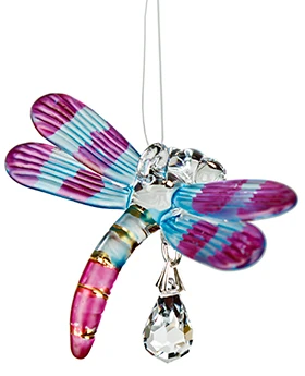 The Fantasy Glass Dragonfly, part of the Woodstock Rainbow Makers collection, is new for summer 2013. Each jewel-toned dragonfly boasts bright colors and glitters with gold-accented bodies. Made of hand-blown, hand-painted glass, all dragonflies are adorned with a clear, genuine Austrian crystal prism and are 5 inches in overall length. Available in Winter Blue, Spring Pastels, Autumn Violet and Summer Rainbow.