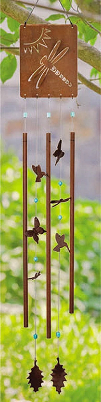 The Victorian Garden Chime-Meadow from Woodstock Chimes features hummingbirds, butterflies and a giant dragonfly to turn your customer's garden into a summertime meadow. The chime is made of rust-finish steel with rust-powder-coated cast aluminum and genuine stone accents. It is 52 inches long.