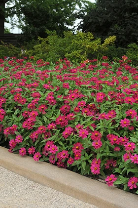 These spreading plants with wine-red blooms stand tall and full in the heat, even with less watering. Their large, colorful flowers provide plenty of appeal at retail and in the garden. The drought- and heat-resistant plants require full sun and have a finished height of 18 to 24 inches and a finished spread of 18 to 24 inches.